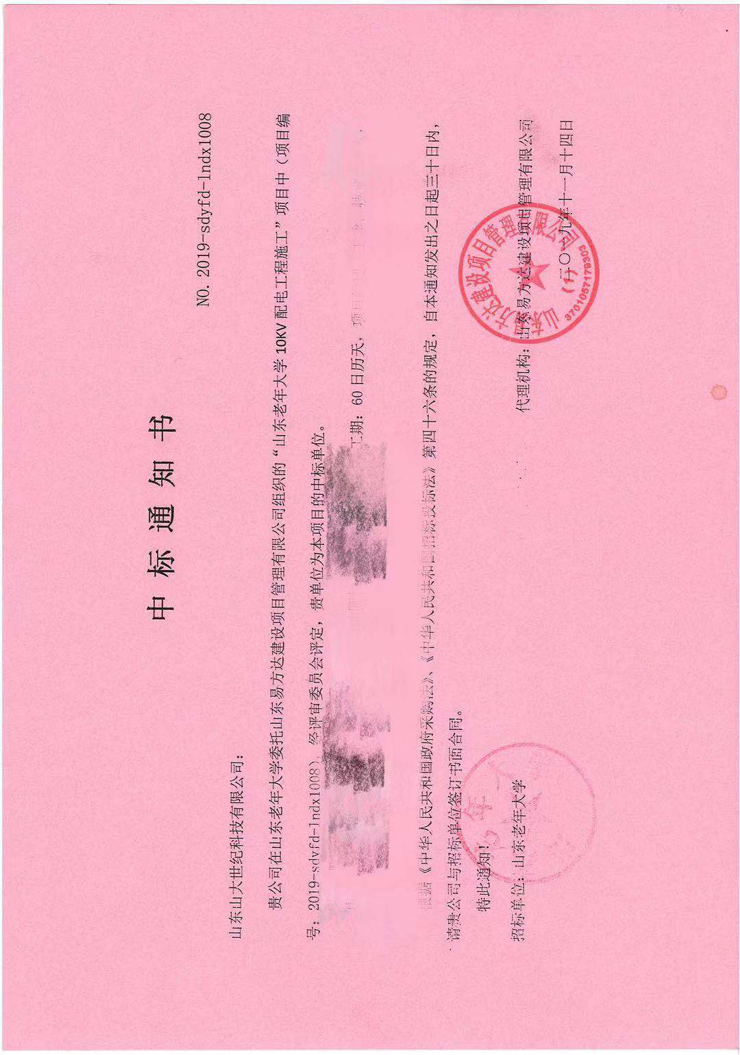 熱烈祝賀山大世紀公司中標山東老年大學(xué)10kV配電項目